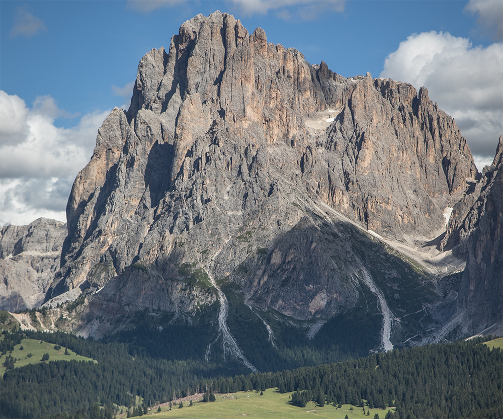 Am Freitag, 28.08.2026 starten wir nach dem Frühstück zur großen Dolomitenrundfahrt. Vom Fassatal geht es über Canazei zunächst in engen Windungen hinauf zu dem auf 2.240 m hoch gelegenen Sellajoch. Nach einem Zwischenaufenthalt fahren wir mit herrlichem Blick auf Langkofel (3.181 m), dem höchsten Berg der Grödner Dolomiten, und dem Plattkofel (2.964 m) über Wolkenstein durch das Grödnertal hinab nach St. Ulrich.